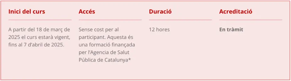 La inscripció a aquest curs s'ha de fer a través de la web de Promoció de la Salut.